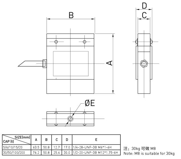 量程:5, 6, 10, 15, 20,30,50,100,200kg